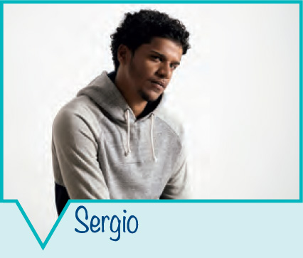 Sergio: Yo era muy travieso, super nervioso, no podía estar quieto ni un minuto: hiperactivo, que dicen ahora. Las clases me aburrían un montón y siempre pensaba en otras cosas. De pequeño, era bastante mal estudiante, la verdad, me castigaban mucho. Por otro lado, era muy simpático y siempre hacía bromas, me gustaba vestirme de payaso e imitar a todos. En esto era gracioso como mi abuelo Pepe… ¡Hasta los profesores se reían conmigo! Físicamente, tenía el pelo rizado, bueno, como ahora… Y era muy delgado, claro, me movía tanto… Lo que más me gustaba era jugar al fútbol, me encantaba. Quería ser futbolista.